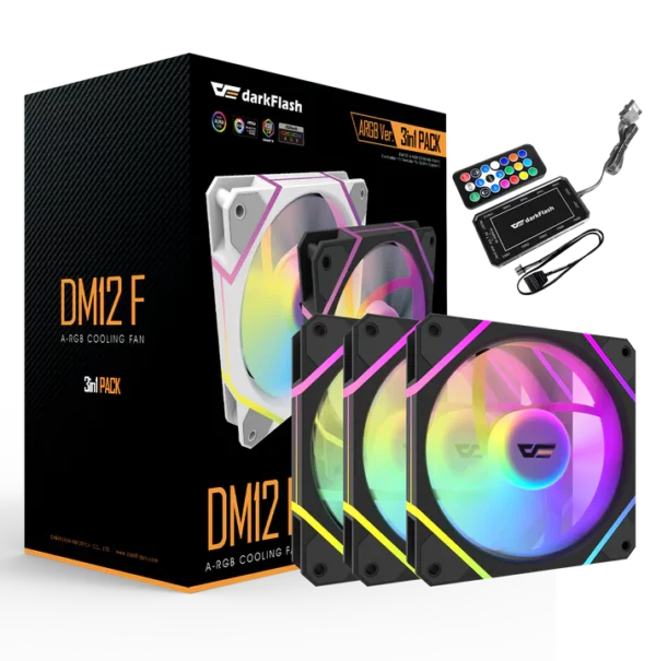 DarkFlash DM12F 3-Pack ARGB Computer Case Fan 120mm Cooling Fan with Remote Controller