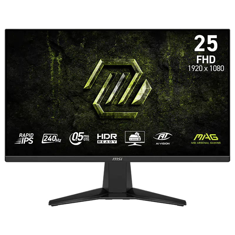 MSI MAG 255F X24 24.5inch 240Hz FHD Rapid IPS Gaming Monitor, 1920×1080, 16:9, 0.5ms GTG, 1000:1 Contrast, 300 Nits, 1x DP 1.2a, 2x HDMI 2.0b, Adaptive Sync, Console Mode, Tilt, VESA 100x100mm
